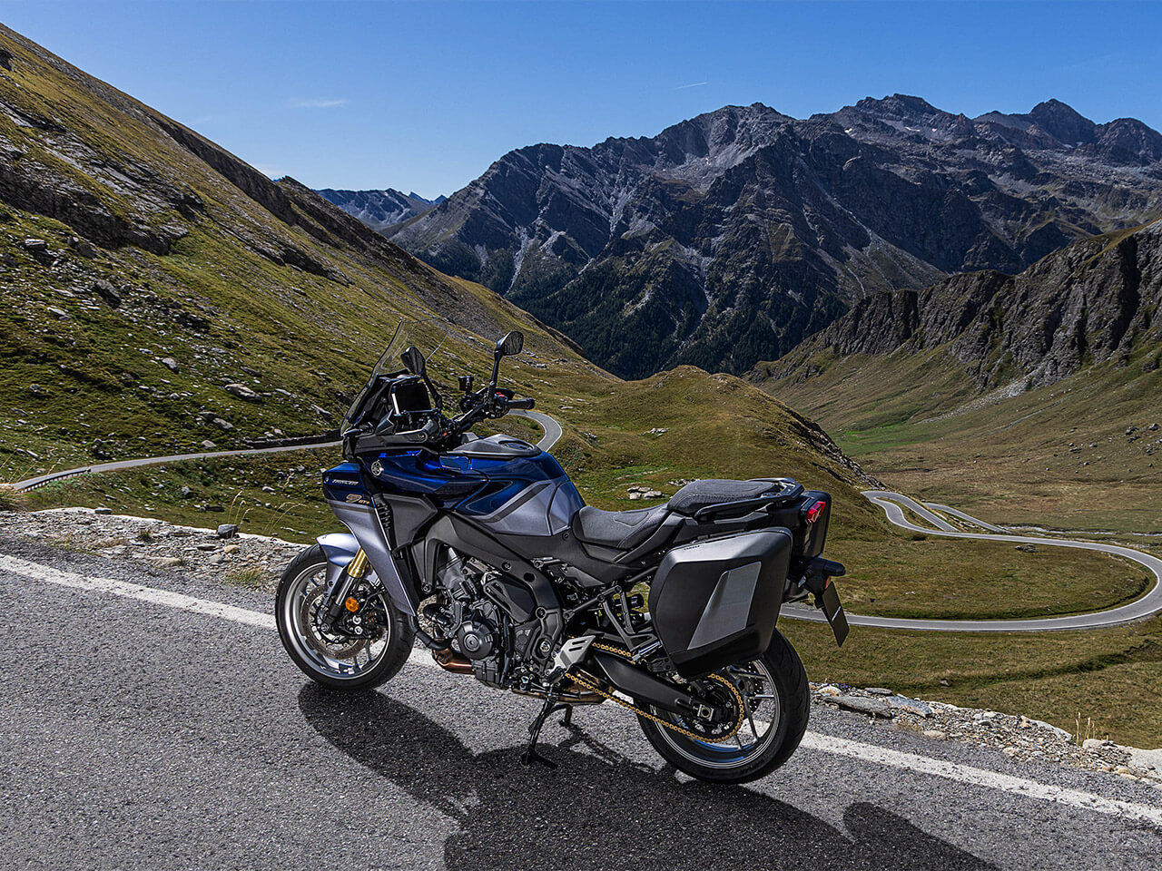 The Tracer 9 GT+ Y-AMT features a low maintenance drive chain made by DID (Daido Kogyo). The endurance chain features rollers treated with a Diamond-like-coating, which increases both performance and durability. The chain stretches less, meaning less adjustment is needed and a longer service life is expected, while friction is also reduced – which the rider will notice while pushing the bike.