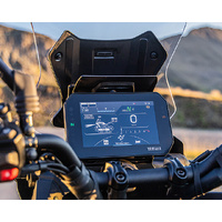 The 7” TFT incorporates three themes and comes with Garmin LinkBox connectivity to provide integrated navigation, while calls, messages and music can be received through the Yamaha MyRide App and controlled using the five-way joystick on the left hand switch cube. A dedicated integrated storage includes a USB-A outlet for charging on the go.