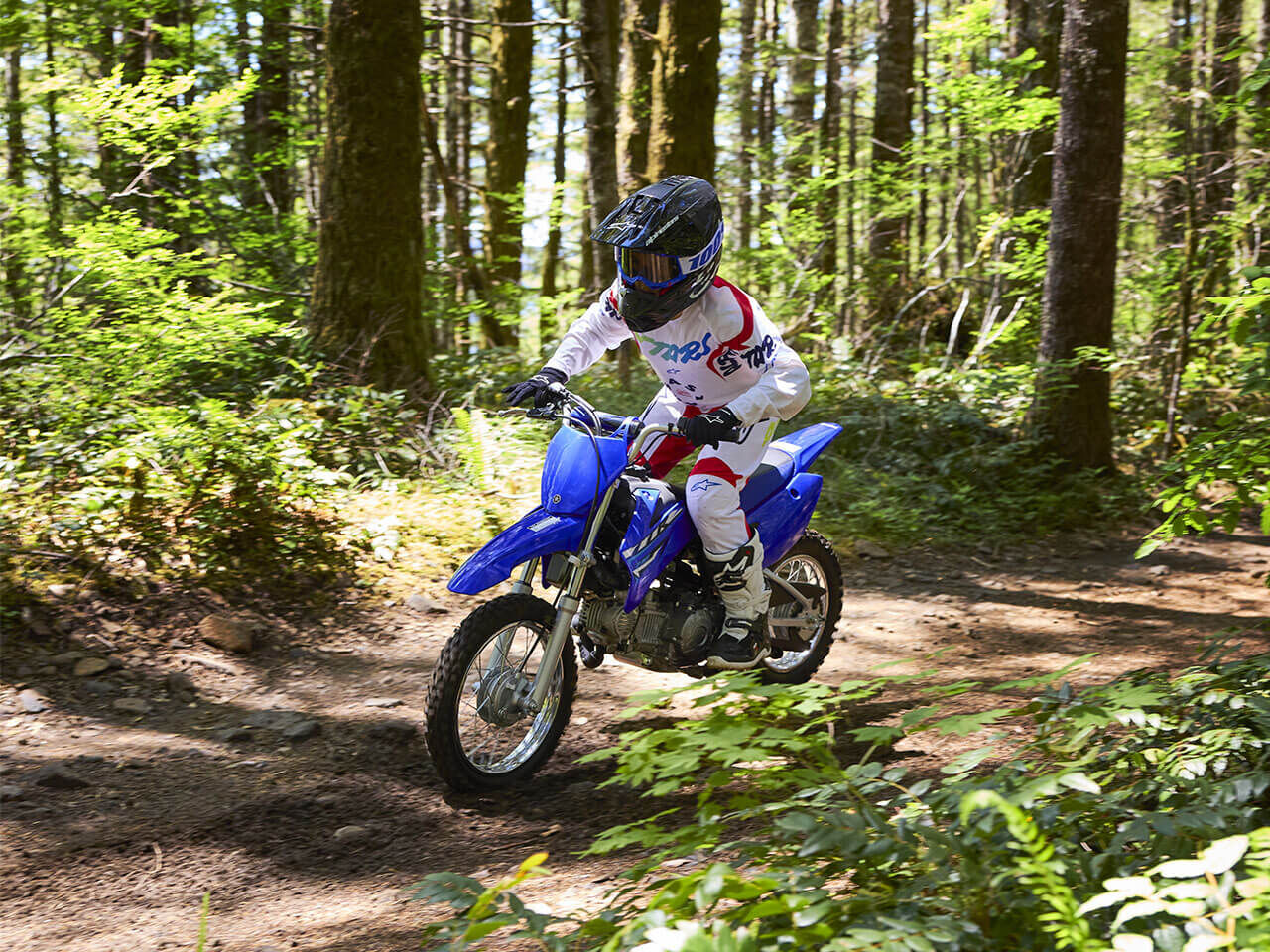 Its radical racing-blue, motocross-style bodywork has been directly inspired by our MXGP-winning YZ race bikes. For easy steering and high levels of rider comfort, this good-looking youth bike features long-travel front and rear suspension.