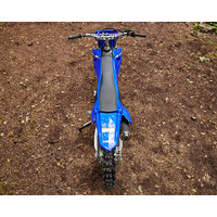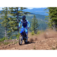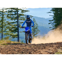 A competition-style flat seat / tank junction makes for great rider mobility while the push button start is a no brainer. A low seat height on top of a long-travel suspension and generous ground clearance make this a serious trail bike that's accessible to wide range of riders.