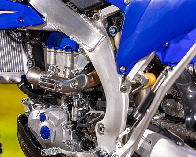 The WR450F's advanced compact four-stroke engine is higher revving and produces broad power across the entire rev range. Additionally, ECU settings are tailored to suit the specific needs of trail riding and enduro competition.