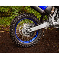 The powerful Yamaha Power Valve System (YPVS) equipped 125cc two-stroke engine is mated to a six-speed transmission for the ultimate cross country powerplant. An ultra-lightweight aluminium semi-double cradle frame is engineered to provide competition-ready handling character and composure.