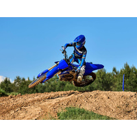 The YZ250F's liquid-cooled, DOHC 4-valve, fuel-injected powerplant features a forward-positioned straight downdraft intake with symmetrical intake ports, high-spec piston and aggressive cam profiles. The advanced four-stroke engine is known for its broad, useable powerband and class-leading low-end and mid-range torque.