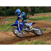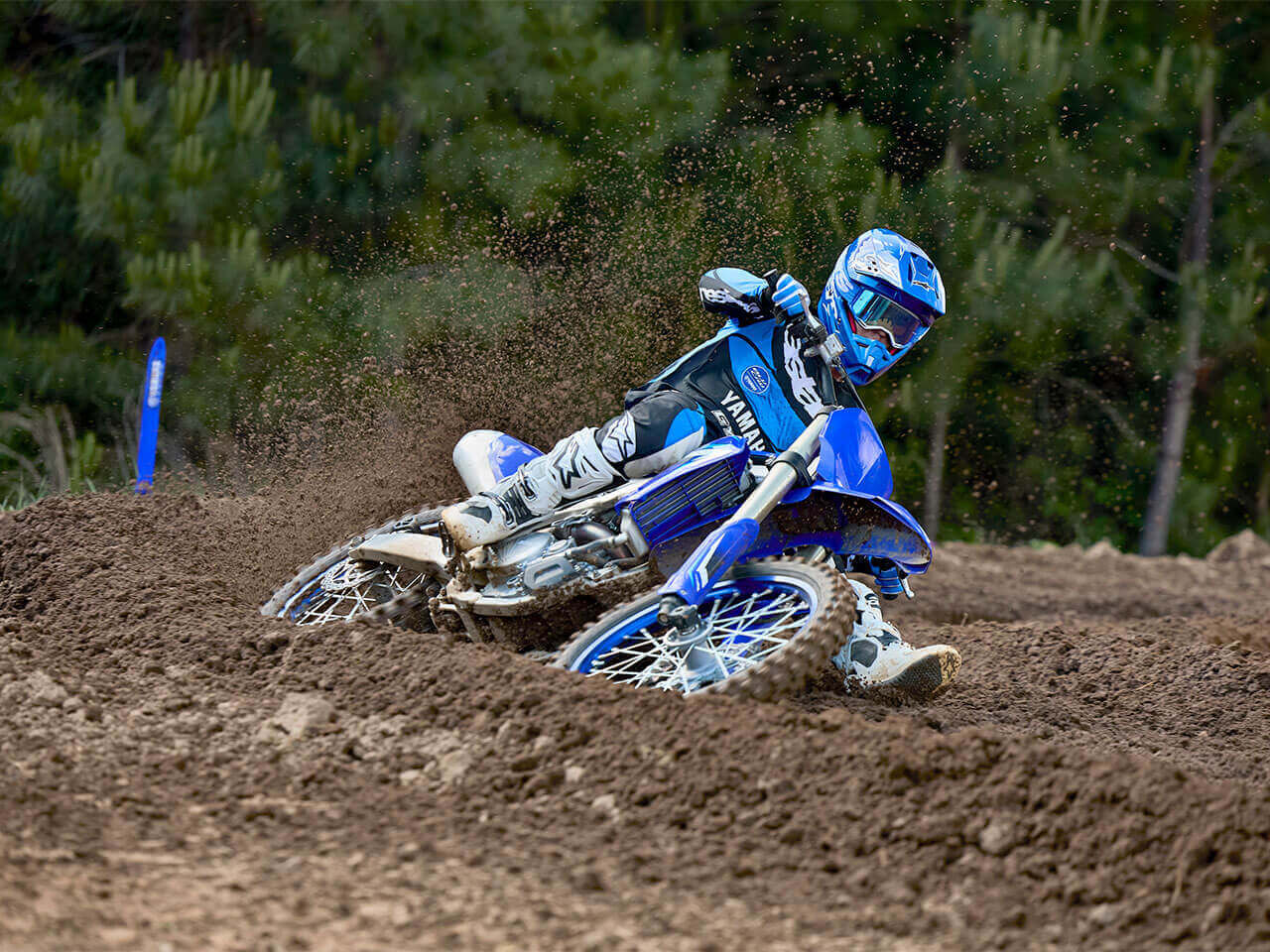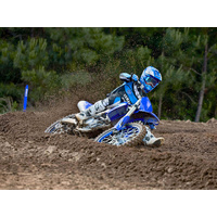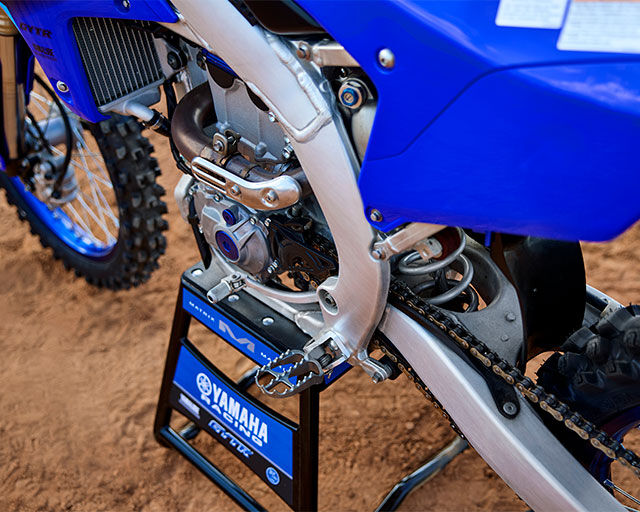 An aluminium bilateral beam frame based on the flagship YZ450F provides just the right amount of strength and flex for the perfect balance of stability and cornering performance. The result is a better handling machine with lightweight feel and increased front wheel traction, allowing the rider to enter corners with greater confidence and more line choices.