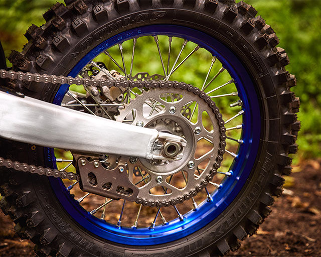 Based on the competition-proven YZ250F, the bilateral beam frame provides just the right amount of strength and flex for the perfect balance of stability and cornering performance. The result is a better handling machine with lightweight feel and increased front wheel traction, allowing the rider to enter corners with greater confidence and more line choices.