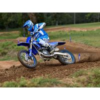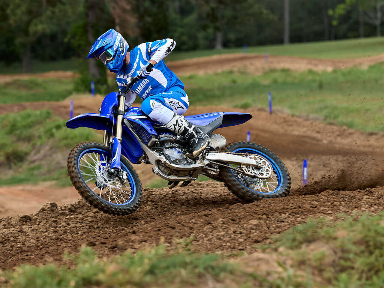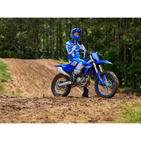 Updated styling includes a slimmer, more compact front number plate, new two-piece side covers, sharper rear fender and new YZ graphics and a new honeycomb-pattern seat cover material maintains ease in rider sliding forward while improving hold from sliding rearward during acceleration.