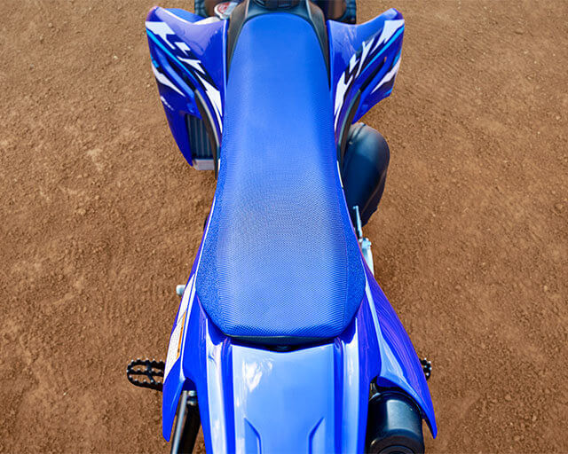 The YZ65 is highly tunable to fit riders of various sizes, with a 4-position adjustable aluminium taper handlebar clamp, adjustable position clutch and front brake levers, grippy foot pegs, and long seat design to help riders move across the bike.