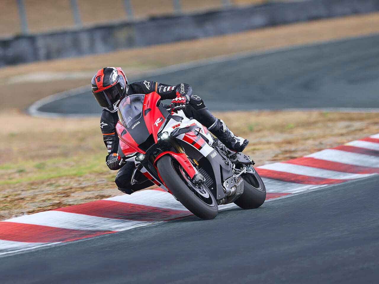 Premium Brembo® front brakes and a highly refined KYB® suspension further enhance its track-focused capability. It all comes wrapped in iconic white and red speed block livery commemorating the historic 1955 birth of Yamaha Motor Company.