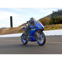 The YZF-R3 features an inverted fork with optimised spring and damping settings, significantly improving fork rigidity, front-end feedback and control. The design also includes a YZR-M1-inspired top clamp for authentic Supersport style.