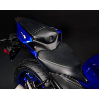 A narrow seat and slim side covers improve the rider's foot reach to the ground while retaining the YZF-R3's relaxed riding position.